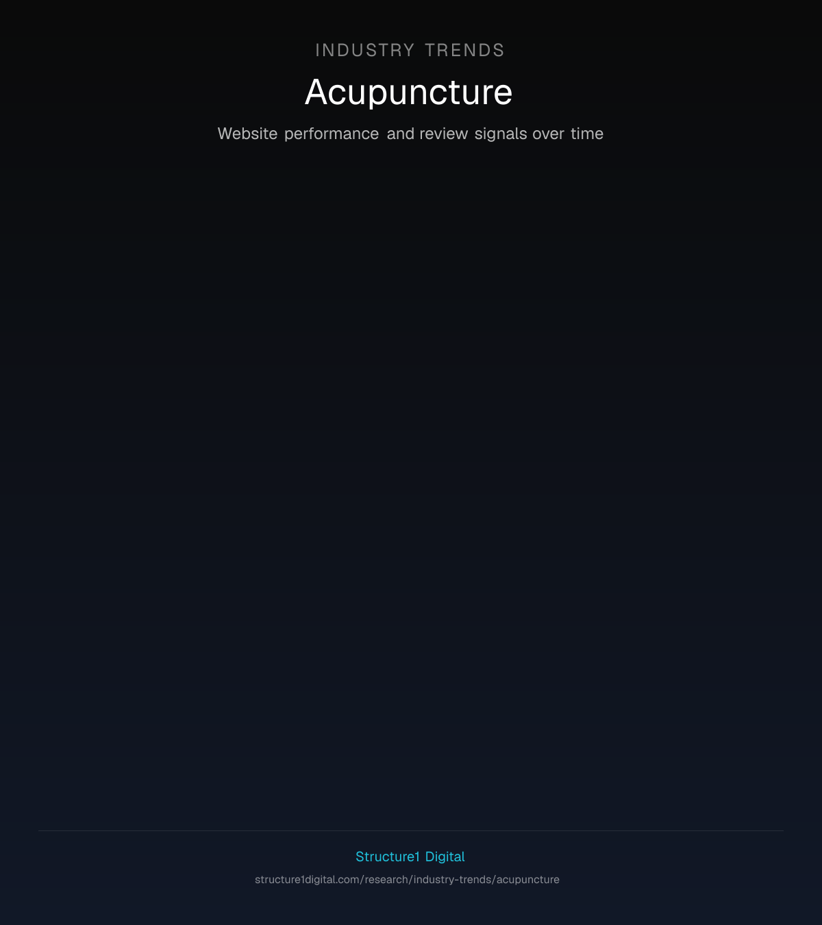 How website performance and review metrics have changed over time for Acupuncture, based on business snapshot history in the Florida Web Performance Index.