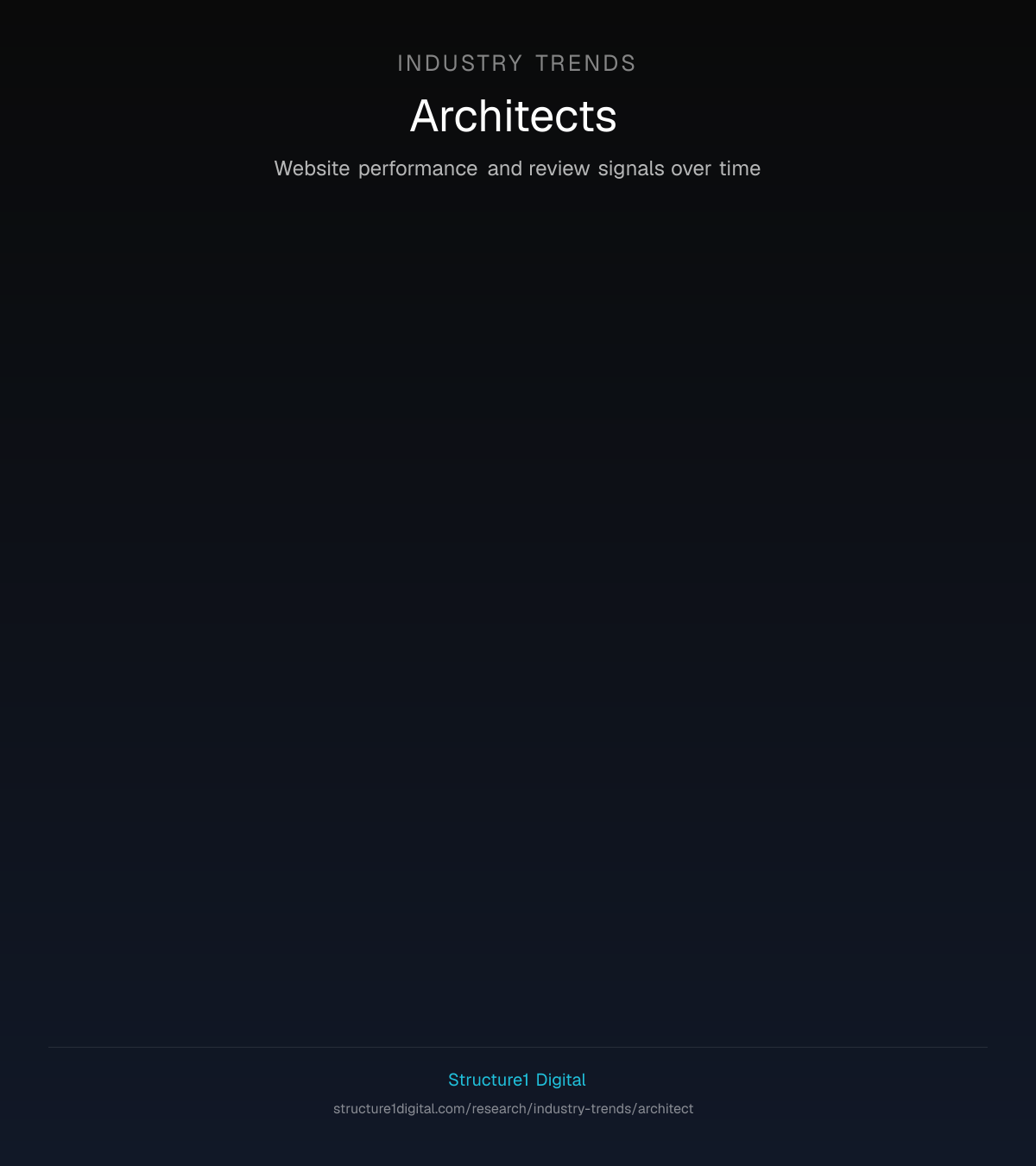 How website performance and review metrics have changed over time for Architects, based on business snapshot history in the Florida Web Performance Index.