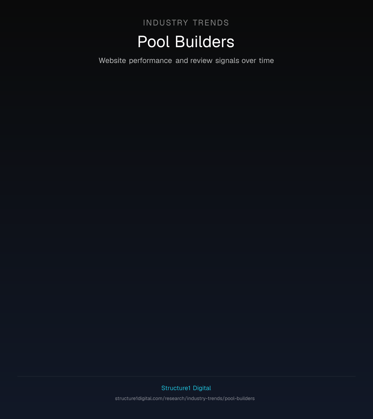 How website performance and review metrics have changed over time for Pool Builders, based on business snapshot history in the Florida Web Performance Index.